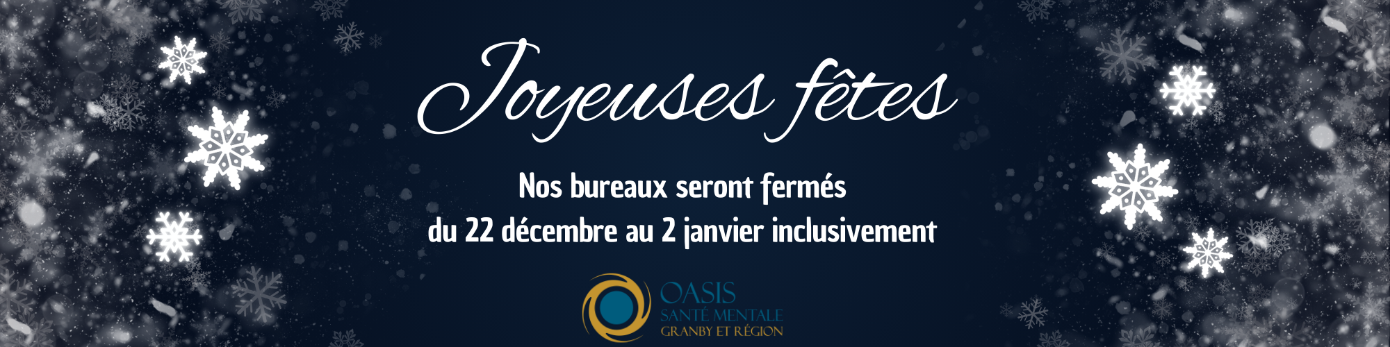 OASIS santé mentale Granby et région a pour mission de regrouper les membres de l’entourage d’une personne qui présente des manifestations cliniques reliées à un trouble de santé mentale, de leur offrir une gamme de services de soutien, et ce, afin de leur permettre d’actualiser leur potentiel.